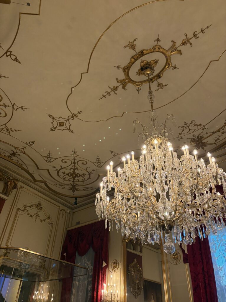 政治と宗教が深く結びついていた時代に、神の代理人として帝国を支配していたハプスブルグ家、シャンデリアは光を演出し、美と力の象徴として用いられていたのかもしれません。